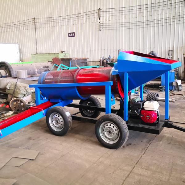 Placer gold trommel is composed of feeding hopper, screen drum, chassis, wheel, transmission device (optional parts: gasoline engine and belt conveyor). It overcomes the problem of screen blocking of various vibrating screens when screening wet materials. Increased production and reliability of the screening system. The maximum product under the sieve is 100mm, the middle is 10-50mm, and the finest is up to 3mm. The product is well received by the vast majority of customers at home and abroad.